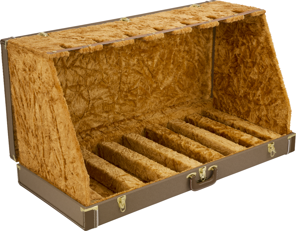 Fender Instrument Case Stands are a great way to display and protect multiple instruments. This case stand looks like a traditional case but easily turns into a stage-worthy guitar stand. Crafted with road-reliable materials, this 3-ply hardshell wooden case boasts a vinyl-wrapped steel carry handle and steel latches. The soft, crushed-acrylic plush interior lining ensures your guitars remain scratch and damage-free.