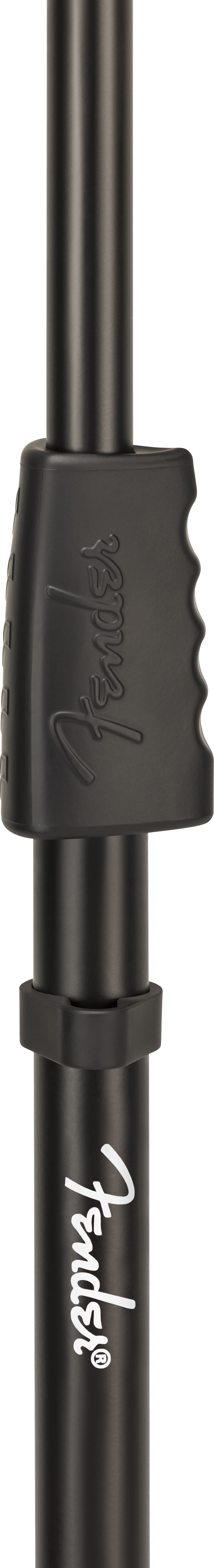 - Sturdy 12” baseHeight adjustable from 36”- 65” (914- 1651 mm)Fender «F» rubberized grip handles, knobs, and height adjustment clutchesHeavy Duty Steel ConstructionIncludes Cable Management ClipsIncludes removable pick and slide holderFits Both US and Euro Mic Clips