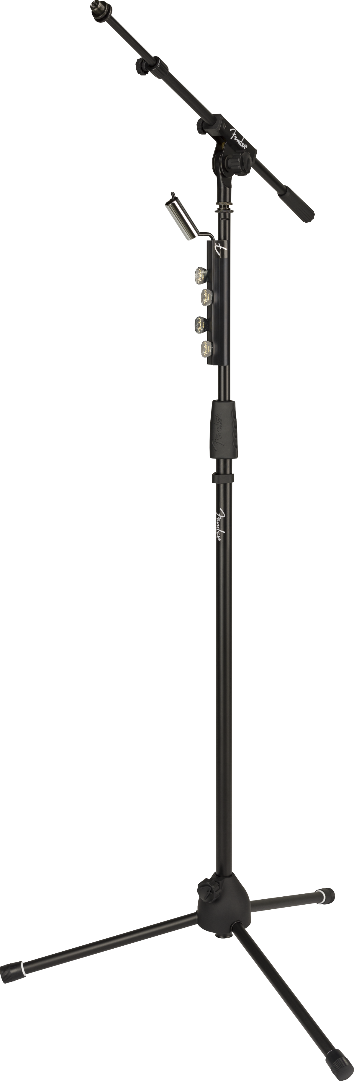Featuring a strong arm to fix your mic securely in place at all adjustment levels, the Telescoping Boom Mic Stand was engineered to ensure stable positioning throughout extended performances and practice sessions. The custom embossed “F” Fender grip components and height adjustment twist clutch allows for quick, on-the-fly adjustments on stage. The Fender Telescoping Boom Mic Stand also includes a removable pick and slide holder that is easily attachable and detachable. Crafted from durable rubber, this clip-on accessory holds up to 12 picks for quick access and storage. The slide holder accommodates all standard slides and is also removable.