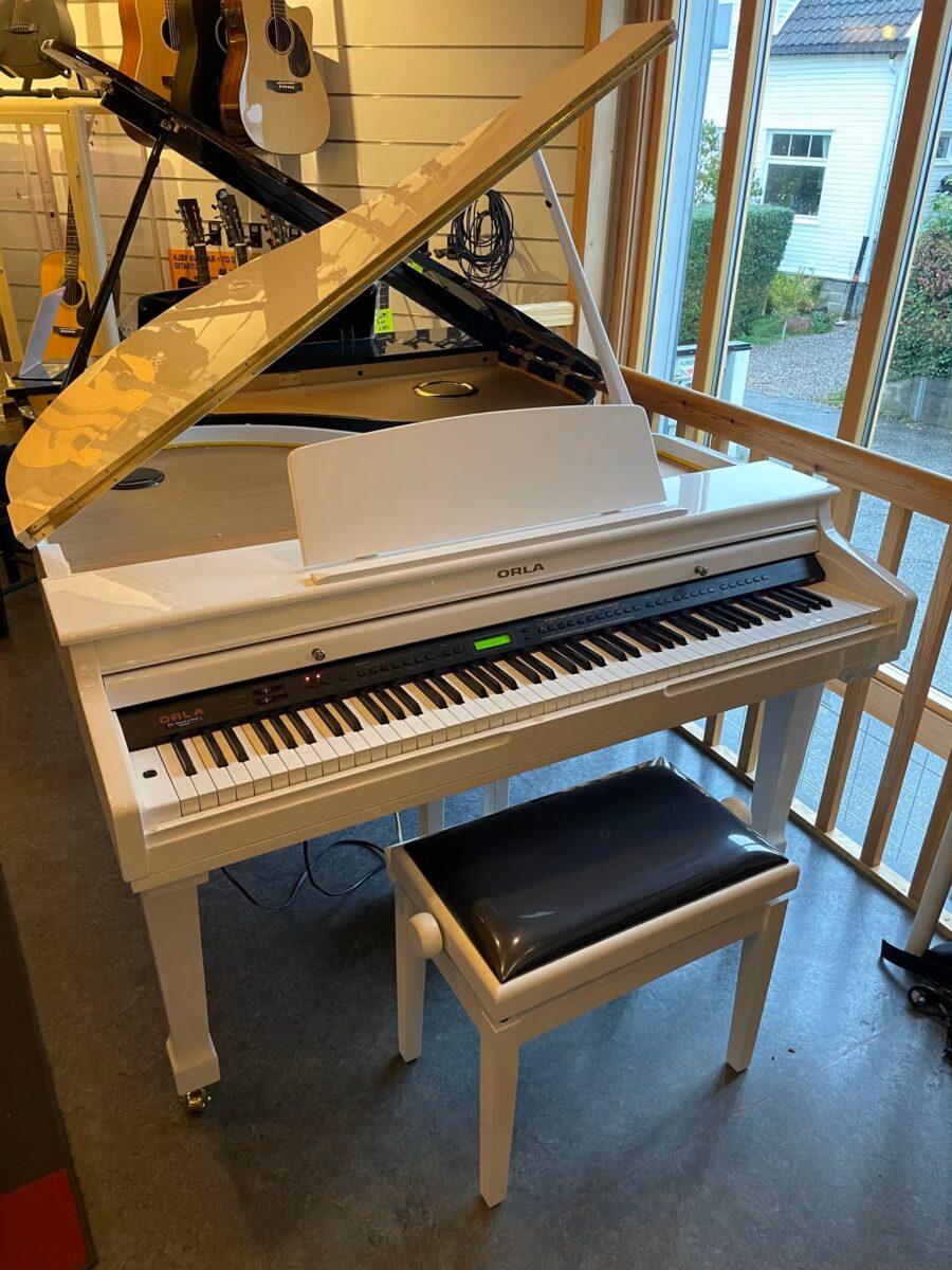 Vi har tatt inbytte på et pent brukt Orla Grand 310 digitalflygel. Instrumentet er gått gjennom hos oss og fremstår i god stand. Noen små merker og riper er det.