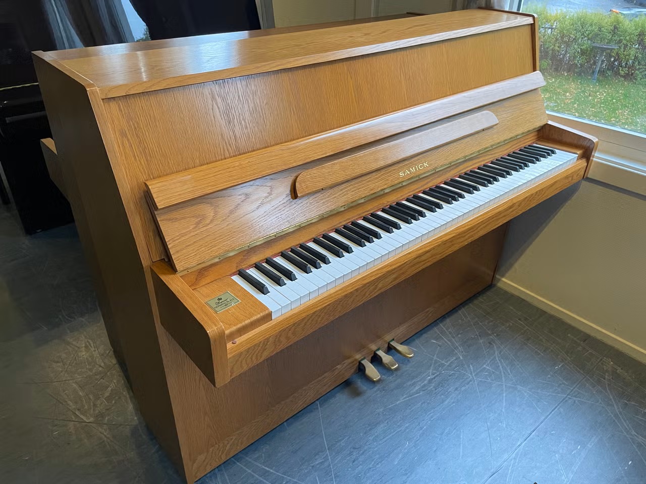 Vi har et Samick CS-108 Akustisk Piano i lys eik for salg.